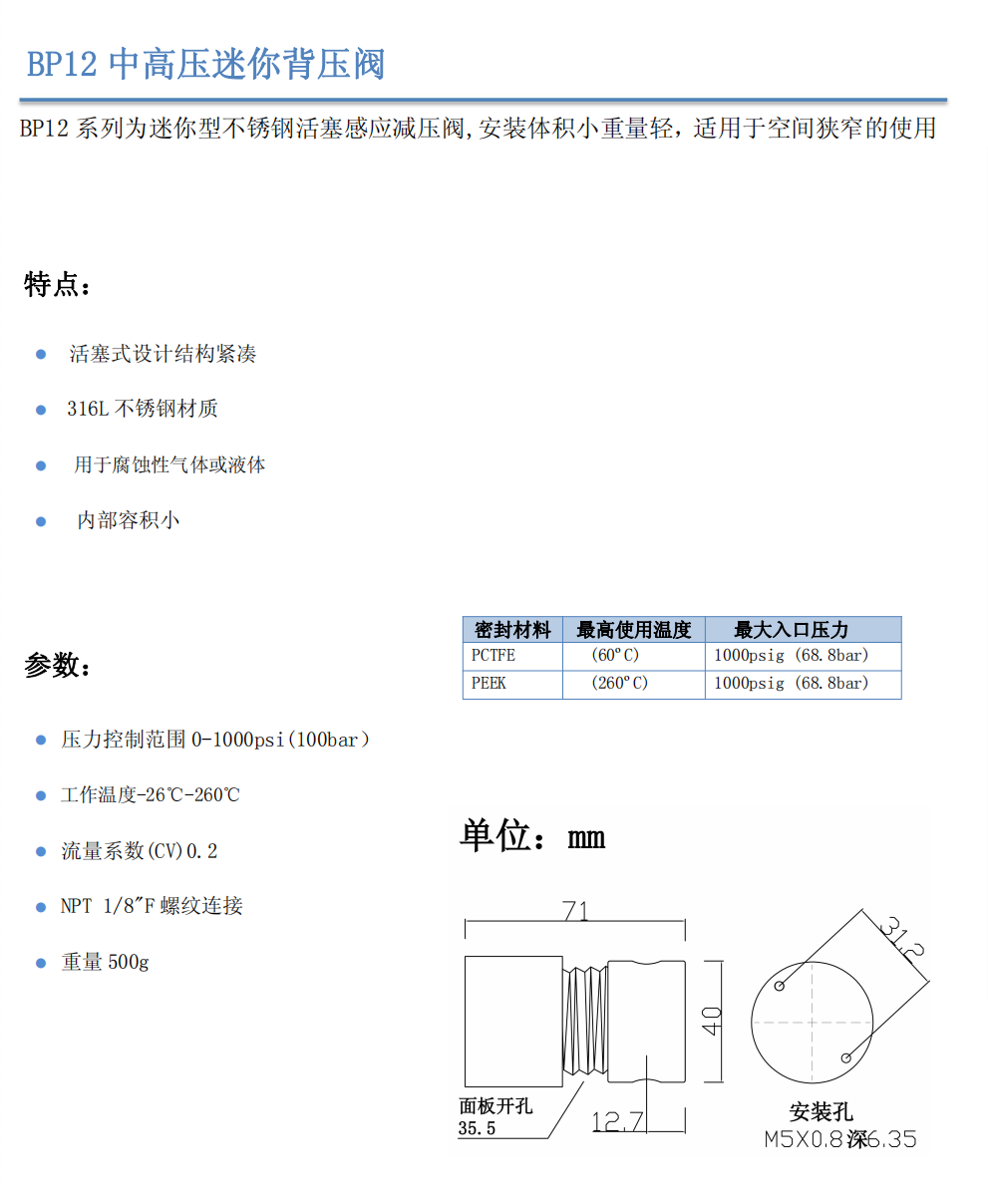 BP12中高壓迷你背壓閥